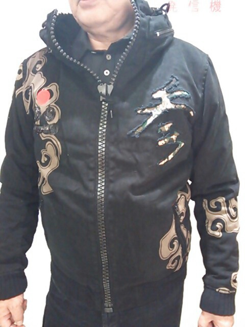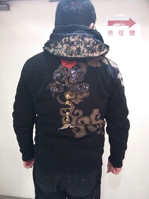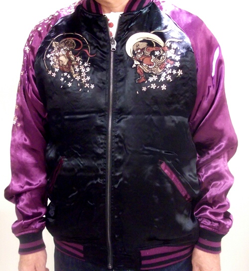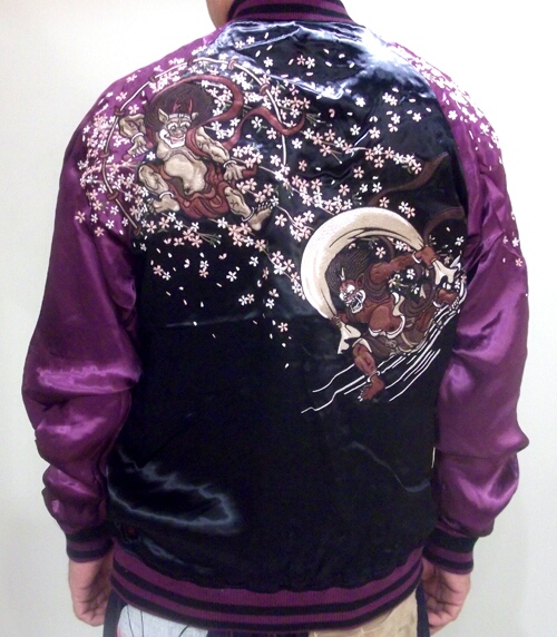 枝垂れ桜風神雷神柄刺繍スカジャン