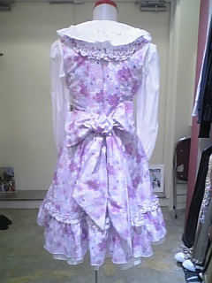 桜総柄のジャンバースカート後ろ姿。