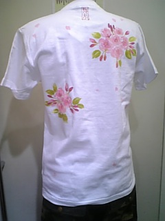 八重桜柄Tシャツ後ろ姿。
