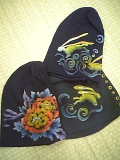 手描きのニットキャッブ。綺麗な色合いです。