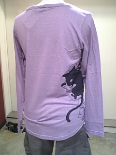 猫と梅紋柄のロンT後ろ姿。