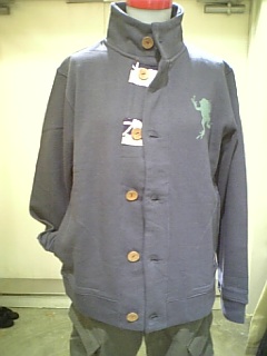 大蛙、雲兎、蛙紋柄のスタンドジャケット。