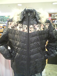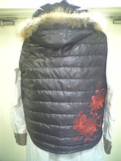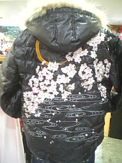 ちりめん切り替え月見桜刺繍ダウン後ろ姿。