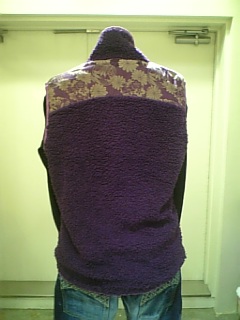 ボアフリースベスト後ろ姿。パープル、ブラック、グレー、ナチュラルがあります