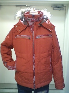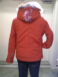 ライダース中綿ジャケット後ろ姿。フード取り外し可能。