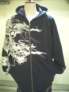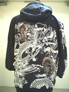 龍雲風神雷刺繍神柄パーカー。