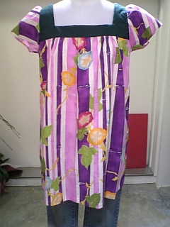 スクゥエア衿のチュニック。パープル朝顔柄。7900円