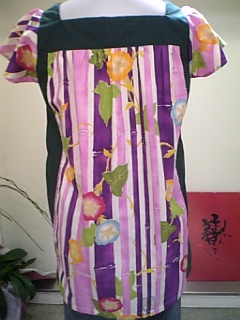 スクゥエア衿のチュニック。朝顔柄の後ろ姿。