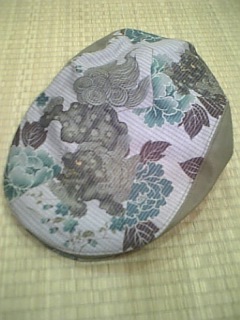 牡丹獅子柄のハンチング。色はカーキ、グレー、茶、ピンク。