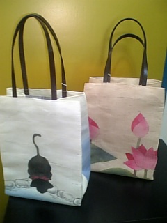 猫柄や蓮柄、カタツムリ柄等のトートバッグが入りました!