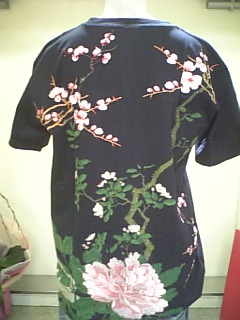 春花三傑柄の後ろ姿です。牡丹と梅の部分が刺繍になっています。