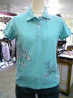 菊柄ポロシャツ。色はホワイト、ブラック、ライトグリーン。6090円です。
