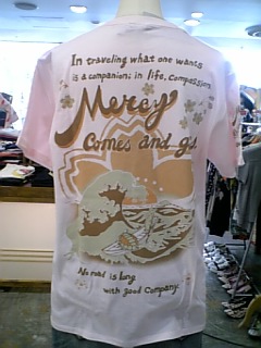 手描きTシャツ後ろ姿。雲龍兎柄色はキナリのみ。