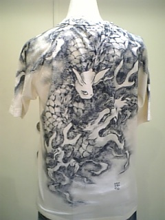 手描きTシャツ。雲龍兎柄色はキナリのみ。
