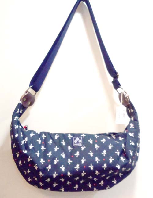 素材 綿 100% 日本製 付属部分は、レザー使用。 ちきりやでお馴染みの半月型ショルダーバッグです。