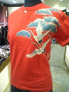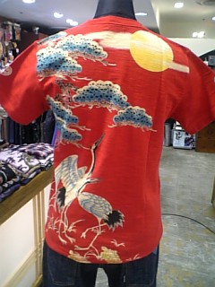 髑髏松柄の半袖Tシャツ赤色の後ろ姿です。