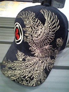 鳳凰柄のキャップです。柄は全て刺繍で綺麗になってます。色は紺と黒です。