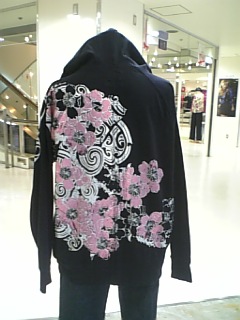 トライバル桜パーカーの後ろ姿です。