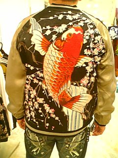 雑誌ジャポニカに掲載されたスカジャンです。花緋鯉柄両面刺繍スカジャンです