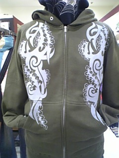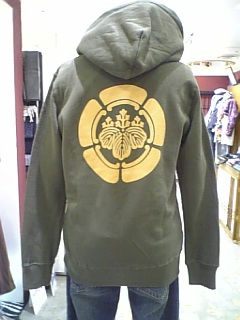 藤トライバル家紋パーカーです、色は グレー紺、グリン、ホワイトがあります。