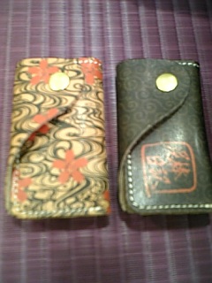 可愛いレザーキーケース。桜流れと唐草泥棒柄です。