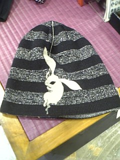 リバーシブルニット帽が入りました。兎柄です。