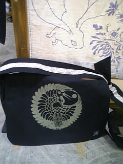 大きなショルダーバッグです。鶴丸柄です。中も綺麗な花柄です。