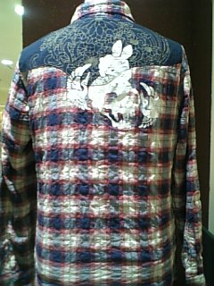 ちきりやさんのチェックシャツ入りました!ドクロ兎紋大小柄です。色は赤、黒、ブルーです