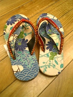全体に和柄で鼻緒の部分には木のビーズがついてます!
