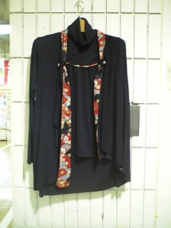 ストールが取り外しが出来可愛いです。中のタートルも和柄のパイピングが映えます。
