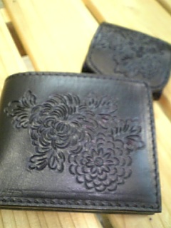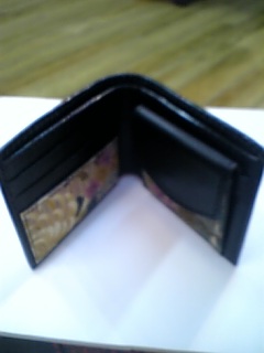 二つ折り財布です。黒菊柄で中には和柄が少し貼ってあります。10290円です。