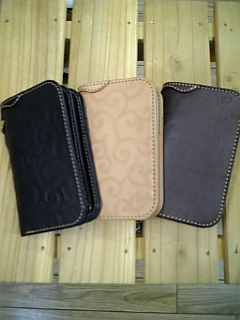 黒、茶、ベージュがあります。コインもカードも入ります。表は唐草模様の型押しです。