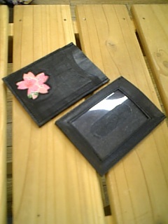 桜の柄のパスケース。革素材に桜の部分はちりめんです。
