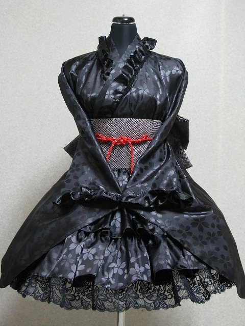 素材 ポリエステル 100% 別布 綿100%(帯) ポリエステル りんずのジャカード生地を使用して光沢のある和ロリに仕上げました。