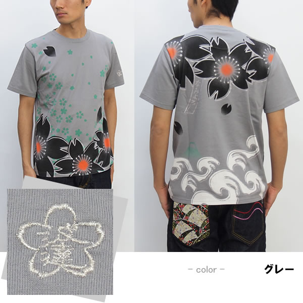素材 綿:100%・【別布】綿:100%・32/2天竺 フロント&バックに描かれた桜が特徴の和柄Tシャツ。