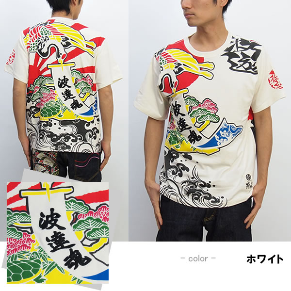 素材 綿:100%・天竺 大漁旗をイメージした、ド派手な印象が◎なTシャツ。