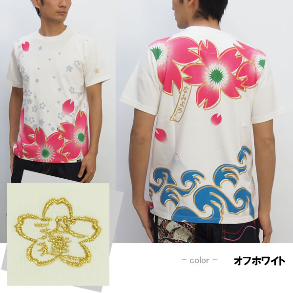 素材 綿:100%・【別布】綿:100%・32/2天竺 フロント&バックに描かれた桜が特徴の和柄Tシャツ。