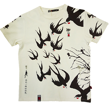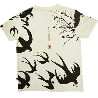 素材 32/2天竺 コットン 100% 春にやってくるツバメを大胆にあしらった作品。