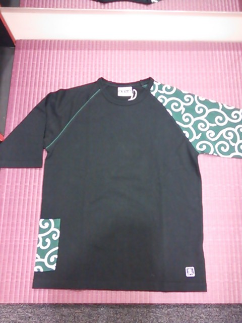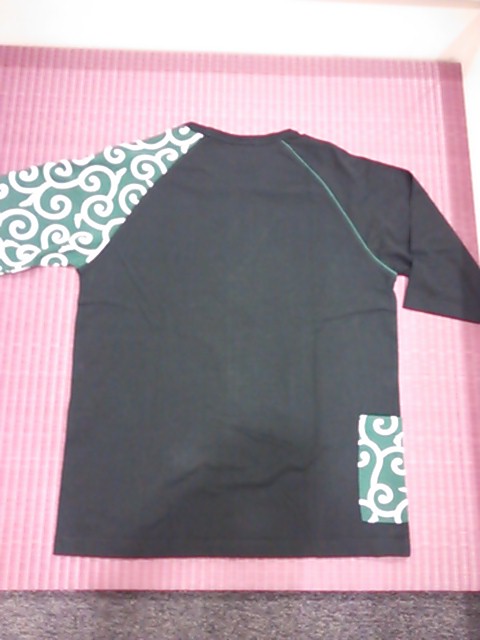 唐草柄のラグラン袖の七分Tシャツ。