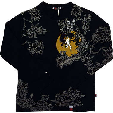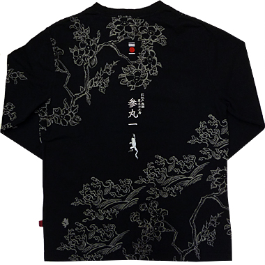 全体的に描かれた桜、波を単色でプリントする事で派手さを抑え、