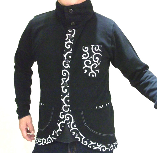 今回、黒唐草シリーズの格好良いジャケットは、襟を立たせても、