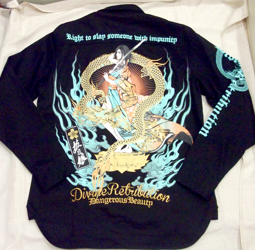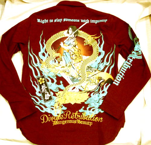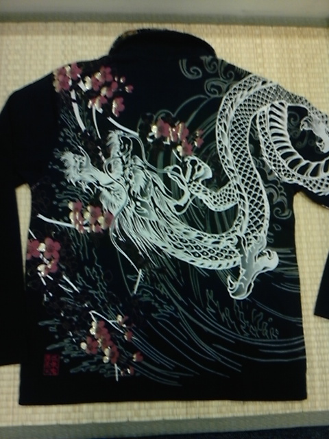 右腕には龍のプリント左胸には横文字で刺繍が入っています。 価格:8,295円(税込)