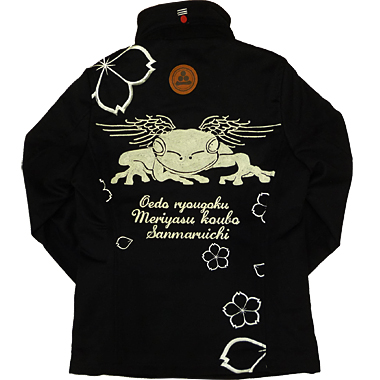 シンプルに配置した羽蛙と桜がポイント!ブルゾンタイプでかっちりクールに決まります。 価格:29,190円(税込)