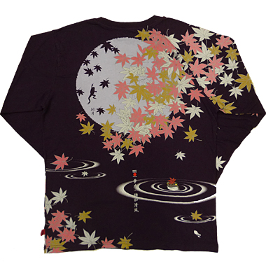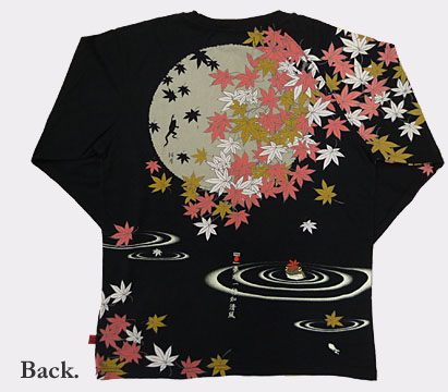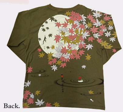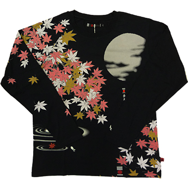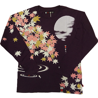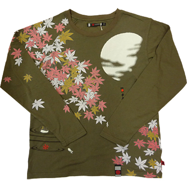 素材 モダール風天竺 コットン 100% 紅葉の流れを断たぬよう右袖をラグランにした、変形ロンTです。