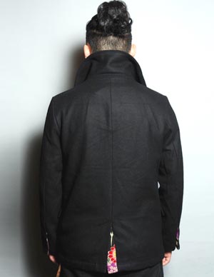 内側から覗く和柄がCOOL! シルエット抜群!メルトン仕様の粋男Pコート登
